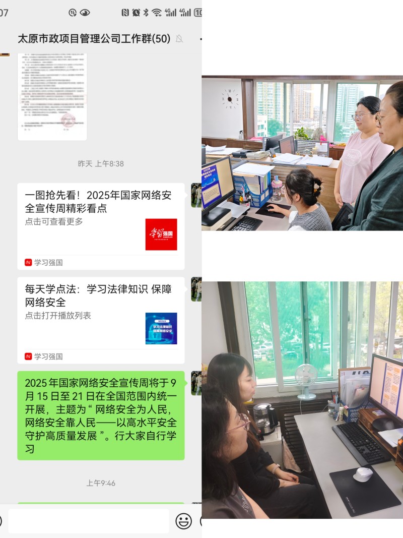 9月15日至21日,項目管理公司黨支部開(kāi)展“學(xué)法用法強本領(lǐng) 同筑安全防護墻”專(zhuān)題活動(dòng)。此次活動(dòng)聚焦《網(wǎng)絡(luò )安全法》《數據安全法》《個(gè)人信息保護法》等核心法律條規,結合生活中常見(jiàn)的網(wǎng)絡(luò )詐騙、信息泄露等案例進(jìn)行解讀與分析,引導黨員干部把所思所學(xué)融入工作與生活,不斷增強辨識與抵御網(wǎng)絡(luò )風(fēng)險的能力,爭當網(wǎng)絡(luò )空間清朗環(huán)境的維護者、踐行者。