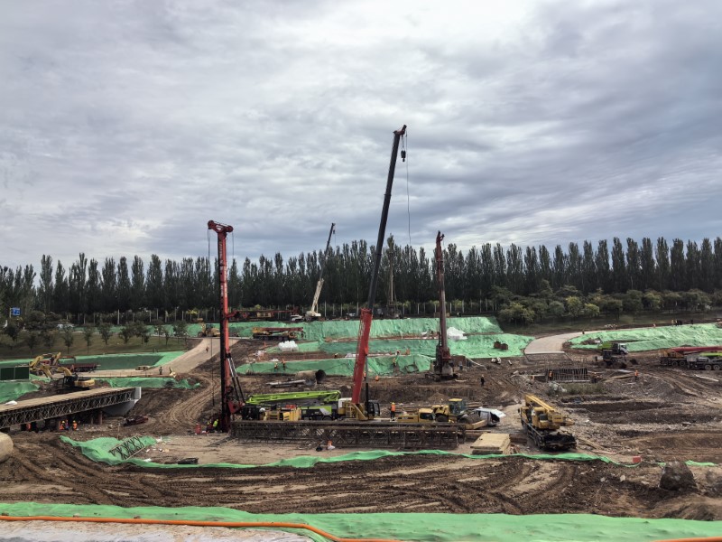 幸福橋設計為一座跨汾河大橋。項目部根據工程特點(diǎn),將工程劃分為東西兩個(gè)工區,分解關(guān)鍵節點(diǎn)工期目標,拆分成一般節點(diǎn)工期,再細化為每周、每日的進(jìn)度計劃,層層細化,層層落實(shí)。同時(shí),項目部安排道排、橋梁等專(zhuān)業(yè)施工隊,通過(guò)組織流水施工作業(yè),減少交叉作業(yè)影響,保證各工作面既滿(mǎn)負荷工作,又不互相干擾,加快施工進(jìn)度。由于該工程施工范圍位于汾河兩岸,地質(zhì)情況比較復雜,地下水位高,地下土質(zhì)為卵石,開(kāi)挖難度較大,施工人員先利用螺旋鉆機進(jìn)行引孔,再采用“止水鋼板樁+拉森樁”的方式,起到有效防水和支護的效果。在進(jìn)行橋梁基礎施工時(shí),項目部采用正循環(huán)鉆孔灌注樁的施工工藝進(jìn)行施工作業(yè),正循環(huán)鉆孔通過(guò)水泵壓送泥漿,從鉆桿柱中心進(jìn)入孔底并返出,能夠快速完成鉆孔作業(yè),操作方式簡(jiǎn)便,降低了施工難度?,進(jìn)一步加快施工進(jìn)度。針對工程重點(diǎn)難點(diǎn),項目部還專(zhuān)門(mén)制定了《深基坑安全專(zhuān)項施工方案》和《高大模板支撐體系安全專(zhuān)項施工方案》,邀請專(zhuān)家進(jìn)行論證,確保重點(diǎn)環(huán)節的施工質(zhì)量。