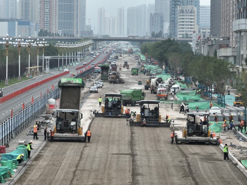 7月20日,地下管線(xiàn)全部完工;7月30日,完成道路基層施工;8月25日,人行道鋪裝結束;9月1日,瀝青上面層完成攤鋪……每一個(gè)工期節點(diǎn)的順利完成,既是參建人員攻堅克難的縮影,也是項目管理科學(xué)高效的符號。項目部將“工序銜接流暢度”作為施工核心抓手,通過(guò)“倒排工期+工序優(yōu)化”動(dòng)態(tài)調整施工組織:各參建單位投入足量人員、材料與機械設備,一體化推進(jìn)工程建設,各工序有效銜接,各工區協(xié)同作戰,組成攻堅“集團軍”;輔營(yíng)單位高效配合、合作緊密,制定“分期分段”“一進(jìn)一退”施工策略,實(shí)施平行流水作業(yè),交叉推進(jìn)工序進(jìn)展,當好輔助“策應團”;物料供應單位加班加點(diǎn)、精準備料,保證物料及時(shí)送達,確保供料全部達標,擔當施工“保障隊”。同時(shí),作為施工牽頭單位,太原市政集團以“時(shí)間共享機制”為紐帶,統籌協(xié)調園林、供熱、綠化等多家參建單位錯峰作業(yè),合理規劃施工場(chǎng)地、協(xié)商確定交叉作業(yè)節點(diǎn),讓各參建方從“單打獨斗”變?yōu)椤奥?lián)合作戰”,推動(dòng)項目建設跑出“加速度”。